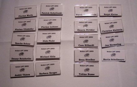 Die Namensschilder der erwarteten Schiedsrichter - rechts nur die aus dem Westdeutschen Hockey Verband und links die aus den anderen Verbänden zusammen.