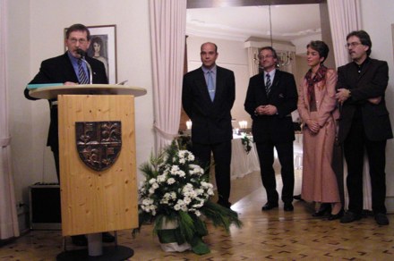 v.li.: K.H. Hannus, 2. Vorsitzender Michael Dietz, der Vize-Präsident des dt. Hockeybundes Wolfgang Hillmann, die Schirmherrin Bürgermeisterin Veronika Fischer, Stadtratsmitglied u. Fraktionsvorsitzender CDU Mayen und Hockeyfreund Franz Grober