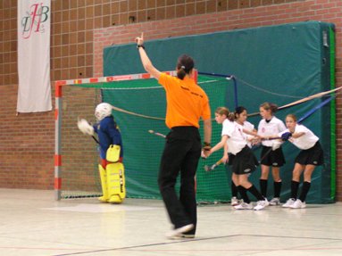 Schiedsrichterin Cora Eilhardt bei der Strafeckenausführung
