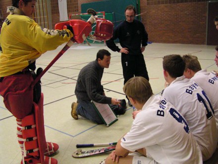 Hier Michael Mechtold mit Co-Trainer Jochen Heimpel (stehend)