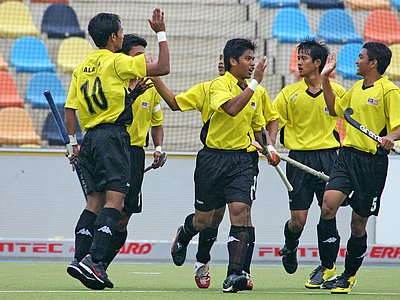 Muhammad Noor Khairul Zakuan (MAS) freut sich über sein 2:0. Muhammad Noor Khairul Zakuan (MAS) is glad about his goal for the 2:0 lead. © hockeyimage.net