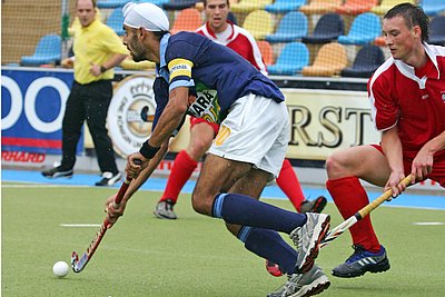 Indiens Kapitain Gurvinder Chandi umspielt gekonnt Polens Mittelfeld. Indians captain Gurvinder Chandi cleverly plays through Poland's middle field. © hockeyimage.net