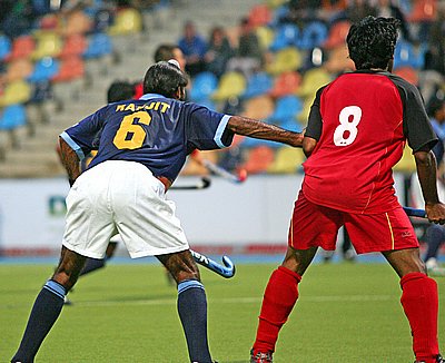 Ranjit Singh (IND) sucht Halt bei Robin Joseph (GER) Ranjit Singh (IND) looks for Robin Joseph's (GER) support © hockeyimage.net