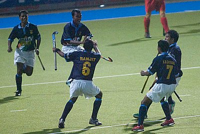 Torjubel über Jagwant Singhs (IND) Ausgleich zu 1:1 Cheers for Jagwant Singh's (IND) goal © hockeyfocus.de