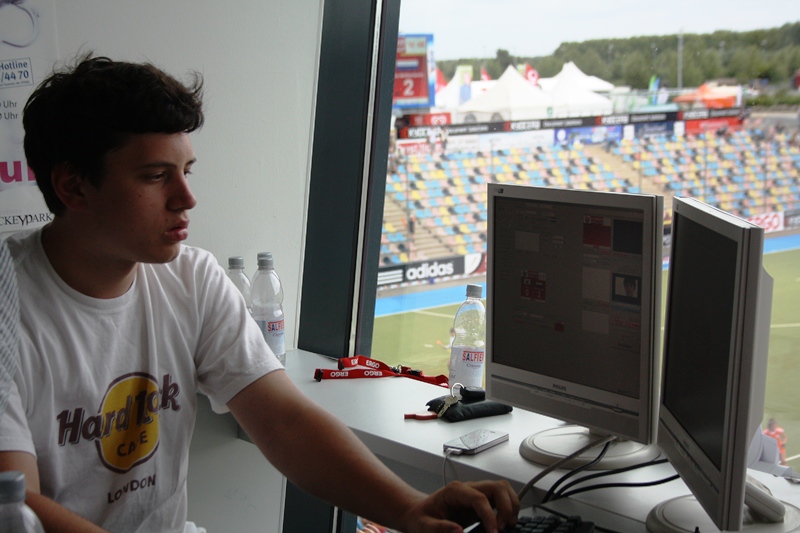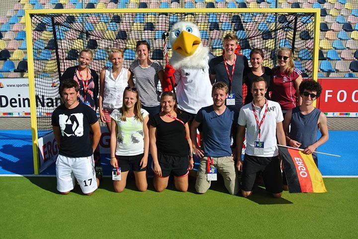 Die Freizeit war zwar nicht gerade üppig berechnet, aber gerade unter Jugendlichen mindestens genauso wichtig wie die Arbeit. Und da der Hockeysport für seine "Hockeyfamilie" bekannt ist, knüpfte man sehr schnell Kontakte. Als bestes Beispiel nehme ich dafür, dass auf der GHTC-Hockeyanlage neben unserem Team der Jugendsprecher noch ein Mädchen zeltete. Theresa war als Volo bei der WM im Einsatz. Ca. 2 Minuten, nachdem wir gesehen hatten, dass Theresa weit abseits von uns ihr eigenes und einziges Zelt aufgeschlagen hatte, saß sie bei uns am Tisch und gehörte ab da an ZU UNS!