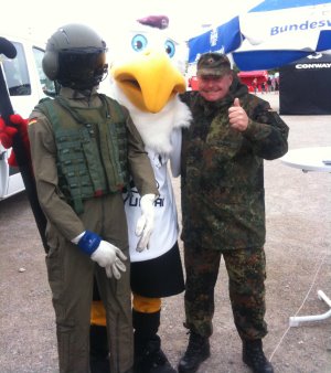 Schlenzi lief wie alle Tage über die Anlage und entwickelte sich zum regelrechten Kinder Hotspot. Nur am Stand der Bundeswehr zeigte er sich plötzlich wehrhaft. Er hat sich partout nicht dazu bringen lassen, sich für mehrere Jahre zu verpflichten.