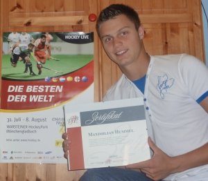 Vom 6. bis 8. August 2010 war ich in Mönchengladbach auf einem Jugendsprecherseminar, wo 12 anderen Teenagern und mir das „National Youth Leader Certificate“ verliehen wurde. Dazu kam ich, indem ich als besonders engagierter Jugendlicher im Verein vorgeschlagen wurde und von der Jury nominiert wurde. Per E-Mail bekam ich das Angebot, am Finalwochenende der Champions Trophy einem Lehrgang beizuwohnen und mir das Zertifikat abzuholen. Natürlich waren auch die Länderspiele inklusive. Diese Chance, mal den ganz Großen des Hockey zugucken zu können, wollte ich mir natürlich nicht entgehen lassen! Also besorgte ich mir eine Mitfahrgelegenheit und war am Freitag nach sieben Stunden Fahrt, aber trotzdem noch eineinhalb Stunden vor Treffpunkt, beim Gladbacher HTC. Dort machte ich gleich Bekanntschaft mit Michael Steinmann und seinen KollegenInnen und natürlich mit meinen sehr netten Mitnominierten.