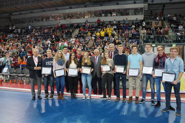 17.02.2015 - Am Finalwochenende der Hallenweiltmeisterschaft in Leipzig gab es nicht nur für die aktiven Spieler und Spielerinnen etwas zu feiern, nein auch 10 Jugendliche aus ganz Deutschland hatten Grund sich zu freuen.