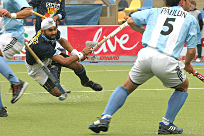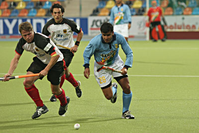 BJOERN EMMERLING (GER) bester Spieler des Turniers JUAN MANUEL VIVALDI (ARG) bester Torwart des Turniers Hockey im TV In Planung: WDR III 16:25-16:55 Uhr GER-ESP Der WDR plant eine Übertragung aus dem WARSTEINER HockeyPark, jedoch... zuvor läuft eine Übertragung eines Radrennens in Köln. Und es wird darauf ankommen, was dort die Zielankunft sein wird. Also hoffen wir Rückenwind!!! 6. Spiel: Deutschland - Spanien 1: 0 (1:0) Montag, 17.4.2006, 14.15 Uhr Das Spiel begann so wie eigentlich alle Spiele der Deutschen. Sie verhielten sich ruhig und spielten mit weit herausgezogenen Außenverteidigern Duckwitz und Wess. Die Innenverteidigung mit Montag und Crone wurde im Tor von dem Krefelder Schulte unterstützt. Dieser machte heute eine hervorragende Partie und war in brenzlichen Situationen ein perfekter Rückhalt... ![]() Moritz Fürste unmittelbar nach seinem frühen und entscheidenden Siegtreffer Die Liveticker » auf deutsch und » auf englisch Zu diesem Spiel erfolgte eine Audio-Live-Reportage mit Michael Knox 5. Spiel: Argentinien - Indien 2 : 3 (0:3) Montag, 17.4.2006, 12.00 Uhr In einer insgesamt von wenig Höhepunkten geprägten ersten Halbzeit hatte beide Mannschaften nicht den richtigen Einstieg ins Spiel gefunden. Viele kleine Stockfouls und Fehlpässe, dazu eine sich wenig bewegende indische Mannschaft, ließen die erste Hälfte des Spiels wenig interessant werden.... ![]() Tor - 1:0 für Indien! Strafecke Indien - Sandeep schlenzt, trifft den Argentinier Orozco an der Hüfte, von dem der Ball ins Tor springt Die Liveticker » auf deutsch und » auf englisch 4. Spiel: Spanien - Indien 5 : 3 (2:0) Sonntag, 16.4.2006, 17.00 Uhr Auch wenn sich zwischen den beiden Spielen die Zuschauer auf der schönen Anlage des Warsteiner Hockeyparks verstreuten, fanden sich die echten Hockeyfans pünktlich um 17.00 wieder auf ihren Plätzen ein und verfolgten die äußerst torreiche Partie zwischen Indien und dem Europameister Spanien. ![]() Die Liveticker » auf deutsch und » auf englisch 3. Spiel: Deutschland - Argentinien 3 : 0 (0:0) Sonntag, 16.4.2006, 15.00 Uhr 16.4.2006 - 2.350 Zuschauer erwarteten eine spannende Partie zwischen Deutschland und Argentinien. Den Heimvorteil wollten die Jungs von Bernhard Peters unbedingt nutzen und so begannen sie die Partie druckvoll und aus einer stabilen Abwehr heraus.... ![]() Der mit diesem Schuss von Carlos Nevado erzielte Treffer zum 3:0 brachte die endgültige Entscheidung (Foto: H.Bohlscheid) Die Liveticker » auf deutsch und » auf englisch Zu diesem Spiel erfolgte eine Audio-Live-Reportage mit Michael Knox 2. Spiel: Deutschland - Indien 4 : 1 (1:1) Samstag, 15.4.2006, 19.00 Uhr Mit tosendem Applaus begrüßten die mittlerweile 4000 Fans die Mannschaften aus Deutschland und Indien. Vor dem Anpfiff schwiegen die versammelten Personen, zu Ehren des kürzlich verstorbenen französischen Ehrenpräsidenten Alain Danet, eine Minute. Es sollte die Ruhe vor dem Sturm werden... ![]() Die Liveticker » auf deutsch und » auf englisch Zu diesem Spiel erfolgte eine Audio-Live-Reportage mit Michael Knox 1. Spiel: Argentinien - Spanien 0 : 1 (0:0) Samstag, 15.4.2006, 16.00 Uhr Die ca. 4000 Zuschauer sahen bei wolkenverhangenem Himmel ein schnelles Spiel mit vielen Torraumszenen und schönen Kombinationen... ![]() Die Liveticker » auf deutsch und » auf englisch Stadion-Eröffnung Ein tolles Programm erwartet die Gäste 15.4.2006 - Der Star des Ostersamstags ist das Stadion im WARSTEINER HockeyPark selbst, denn es wird seine offizielle Einweihung gefeiert. Dazu haben die Verantwortlichen des DHB und der Betreibergesellschaft einen attraktiven und würdigen Rahmen geschaffen... Hockeyfest soll Familienfest werden Osteraktion - mit 5,00 € seid Ihr dabei 4.4.2006 - Der Deutsche Hockey-Bund hat sich zum Familienfest Ostern noch eine Besonderheit überlegt. Es wird für alle drei Tage des Vier-Nationen-Turniers ein Sonderangebot für Kinder und Jugendliche geben. Alle Besucher zwischen 7 und 18 Jahren zahlen 5,00 Euro (zzgl. 15 % Vorverkaufsgebühr) für den Eintritt und haben dann freie Platzwahl auf der Haupt- und den Kopftribünen. Diese Karten gibt es im Vorverkauf jedoch nur am Ticket-Counter im Warsteiner HockeyPark oder an den Veranstaltungstagen an der Tageskasse.