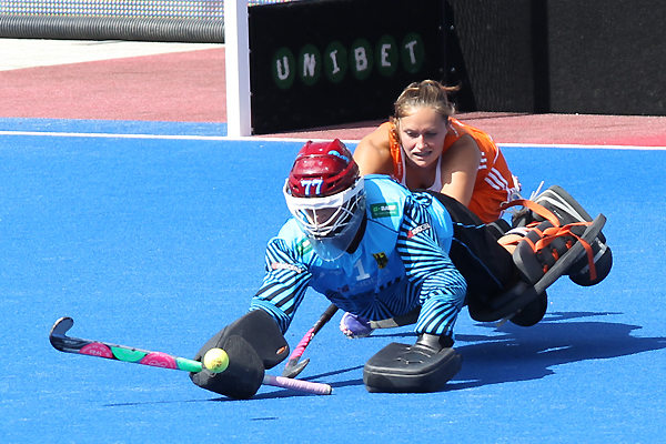 Die Anfangsphase gestaltete das DHB-Team sehr mutig und offensiv, hatte in den ersten Minuten die besseren Szenen. Doch dann holten die Niederländerinnen mit dem ersten Angriff die erste Ecke. Die hielt Frank aber stark mit Schlägerparade links unten (5.). Und dann passierte es im nächsten Angriff über recht. Die Holländerinnen kombinierten sich in engem Raum durch und Ginella Zerbo überwand Yvonne Frank mit einem flachen Ball aus kurzer Distanz zum 1:0 (6.) für den Favoriten. Valerie Magis ließ die nächste Großchance der Oranjes aus, als sie, statt freie Mitspielerinnen am langen Pfosten zu bedienen, direkt schoss und an Frank scheiterte (9.).