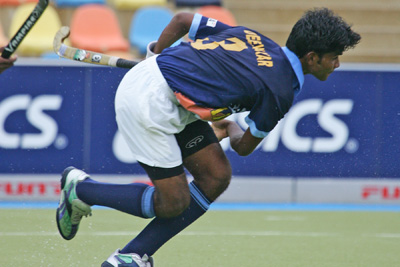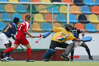 ![]() Indien - Polen 9 : 1 (5:0) Dienstag, 07.08.2007 - 15:30 in Mönchengladbach Ram als Alleinunterhalter Indiens Eckenschütze Deewakar Ram war klar der auffälligste Spieler dieser Begegnung - allein sechs Tore gingen auf sein Konto, die Torjägerkrone dürfte ihm schon nach dem ersten Turniertag kaum noch zu nehmen sein. Doch der Reihe nach.