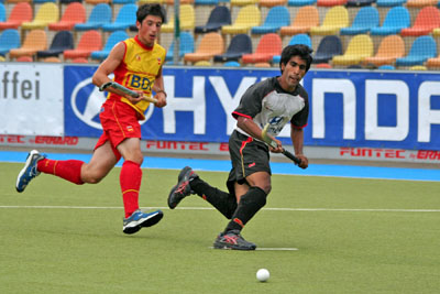 ![]() Deutschland - Spanien 2 : 3 (2:2) Dienstag, 07.08.2007 - 18:00 in Mönchengladbach Deutsche Chancenverwertung unzureichend Ohne Torhüter Tobias Franzke und den Berliner Robert Marx ging Deutschland ins erste Turnierspiel. Bereits in der ersten Spielminute tauchte Pedro Tome gefährlich vor Nicolas Jacobi auf, der gerade noch parieren konnte. Kurze Zeit später musste er erneut gegen Franc Dinares retten, der schon während der WM im letzten Jahr dem spanischen A-Kader angehörte.
